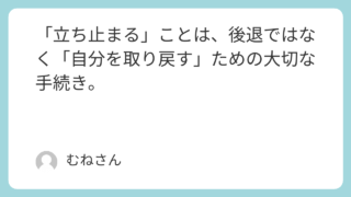 「立ち止まる」ことは、後退ではなく「自分を取り戻す」ための大切な手続き。